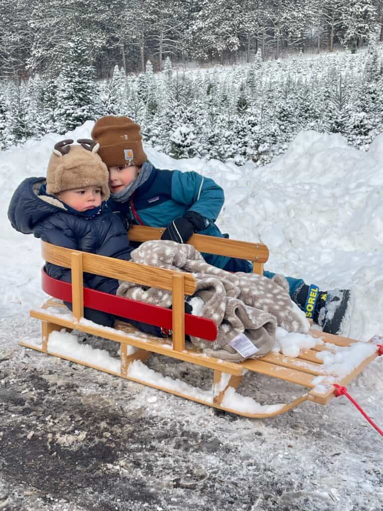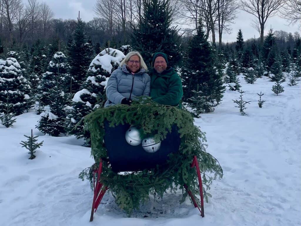 While we understand that the main purpose of your visit is to find your “perfect” family Christmas tree, porch pot and or wreath, Santa’s Evergreens strives to make your tree farm experience inviting, friendly, and memory making. Our services are designed and implemented to make your visit smooth and seamless. While at the farm, we invite you to take photos in our antique sleighs or in front of our vintage pick-up truck. You are also welcome to sit by our fire and take in the ambiance (weekends only). Treat bags are available for the children and are distributed at the time of payment.